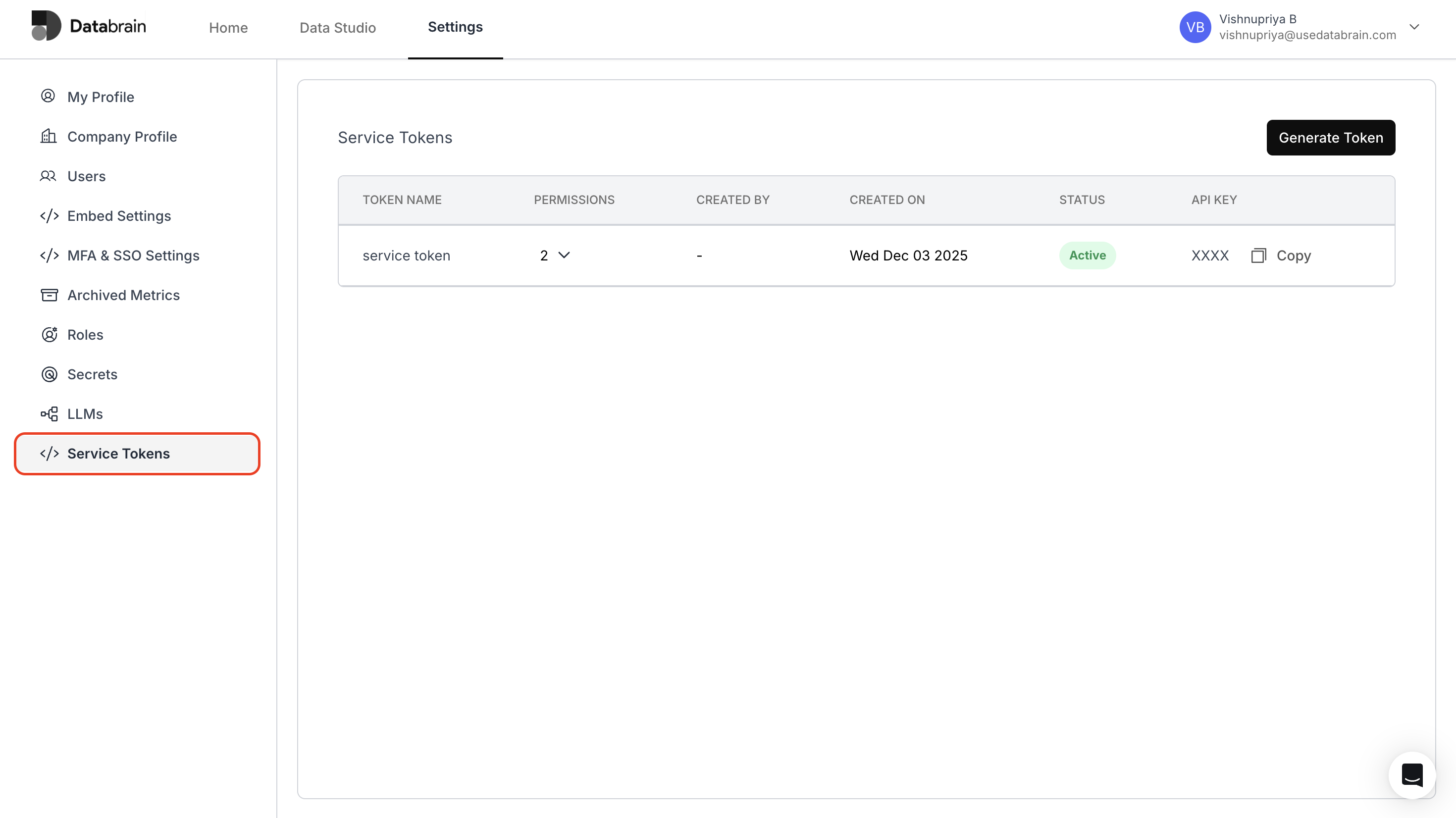 Service Tokens and API Key Rotation: You can now create and manage service tokens within the app for improved security and API lifecycle management. This enables API key rotation directly through the Data App for safer long-term usage.