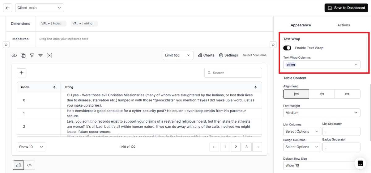 - Text Wrapping in Table Chart Columns: Introduced text wrapping for better readability in table charts.