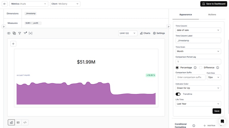 - Lifetime Option in Single Value Card: A new option, Lifetime, has been added to Single Value Cards to perform aggregate calculations without comparisons.