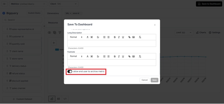 - Private & Publish End User Metric in Embed Dashboard: You can now use