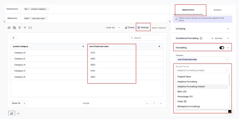 - Adaptive Formatting – Indian Number System: Added support for number formatting in the Indian system (e.g., lakh, crore) for improved readability.