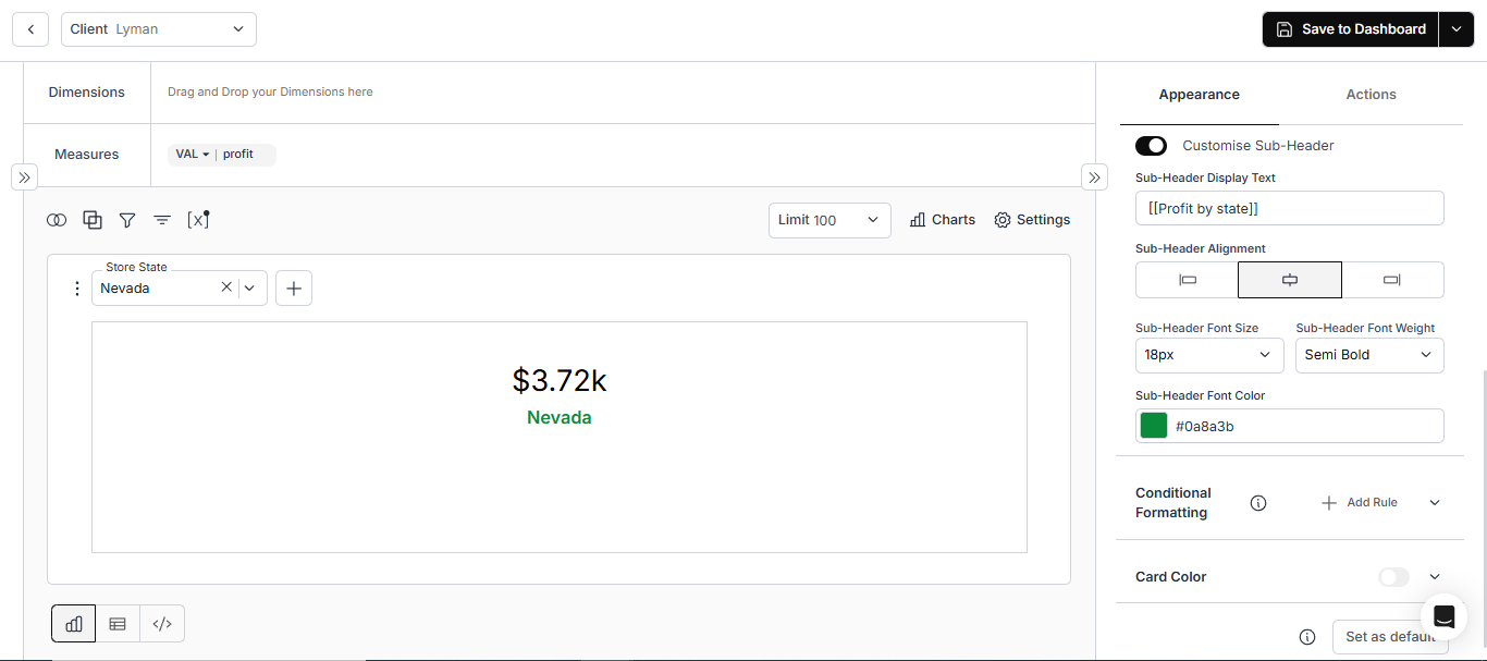 - Single Value Card: We’ve added alignment and font options, along with dynamic property support for sub-header text in the Single Value Card. String-based conditional formatting support has also been introduced.