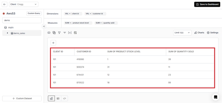 - Custom SQL Revamp: We’ve enhanced the Custom SQL interface to offer a cleaner editing experience and improved validation feedback for better query building. Users can write custom SQL queries and save them as Table Chart, Table Chart with Dynamic Table, New Chart or Custom Dataset.