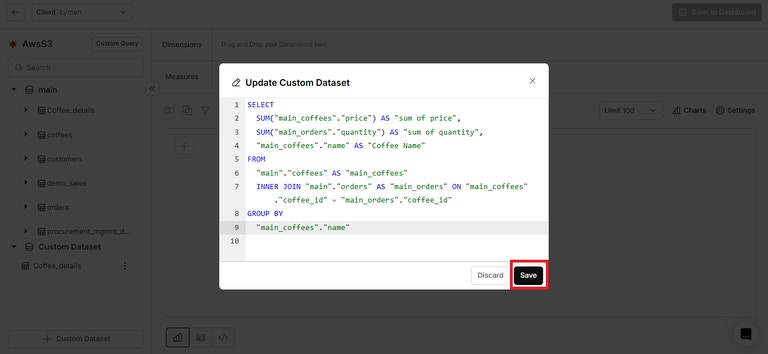 - Save a Custom Dataset (View) to Multi-Selected Datasource: You can now save a custom dataset across multiple selected data sources, enabling seamless data management and greater flexibility. Refer to the document below: