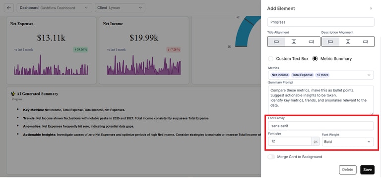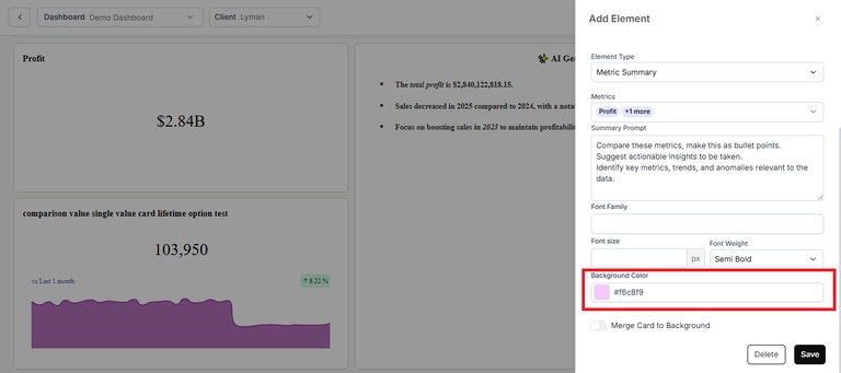 - Background Color Option for Metric Summary: You can now set a background color for the metric summary card.