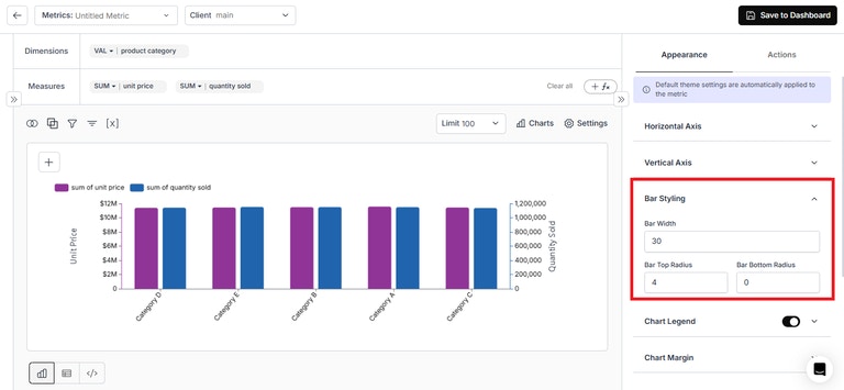 - Bar Top Radius – Round the top edges of bars for a softer, modern look