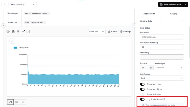 - Y Axis - Log Scale: Added the ability to convert the Y-axis to a logarithmic scale for improved visualization of wide-ranging values.