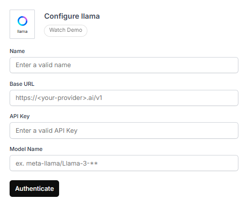 - API Key: Paste your valid API Key provided by the LLaMA service provider.