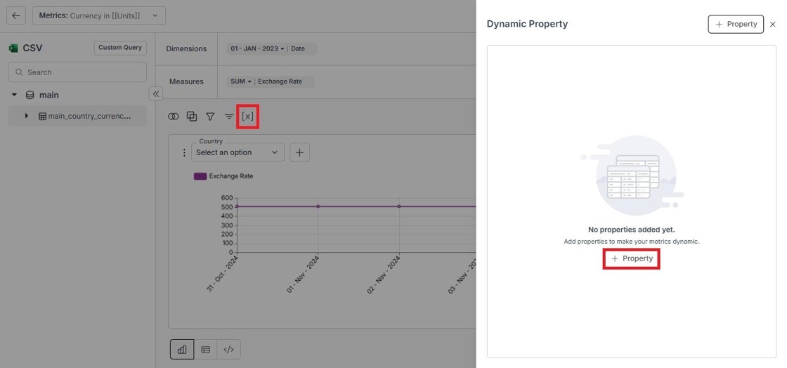 - Then, click on “+Property” to add a dynamic property to your metric.