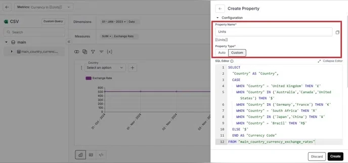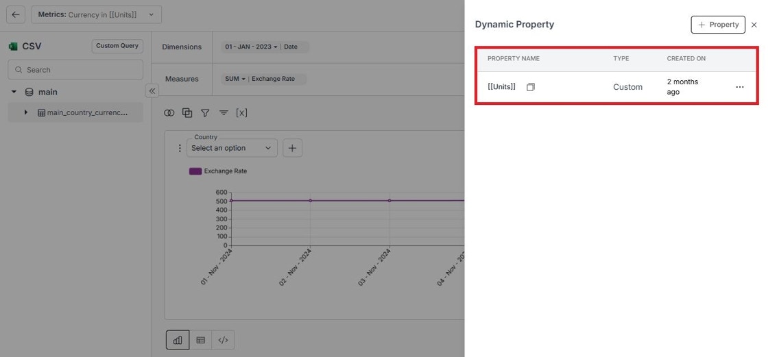 An e-commerce business operating in multiple countries needs to represent revenue in different currencies. The finance team chooses to analyze revenue trends in localized formats by selecting different countries. Here are the steps to implement Dynamic Property for revenue tracking:1. Access Dynamic Property: