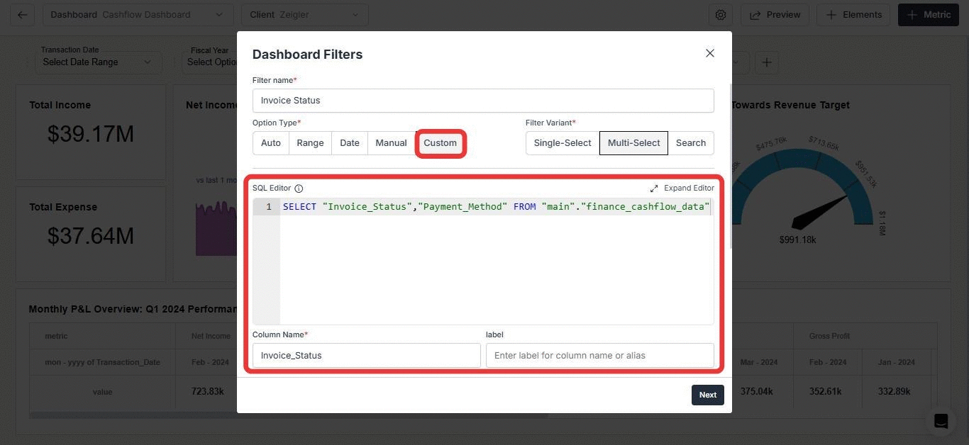 - Add Dashboard Filters: