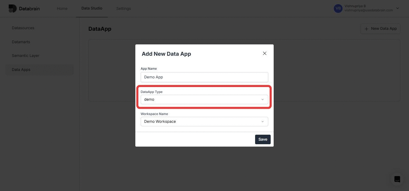 - Finally, click on “Save” to create the data app.
