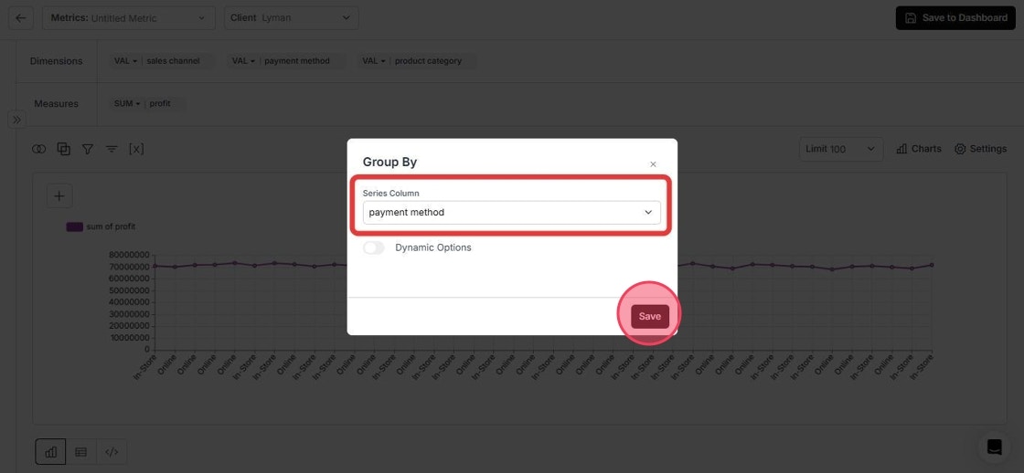 Choose the column you want to group in the “Series Column” field.