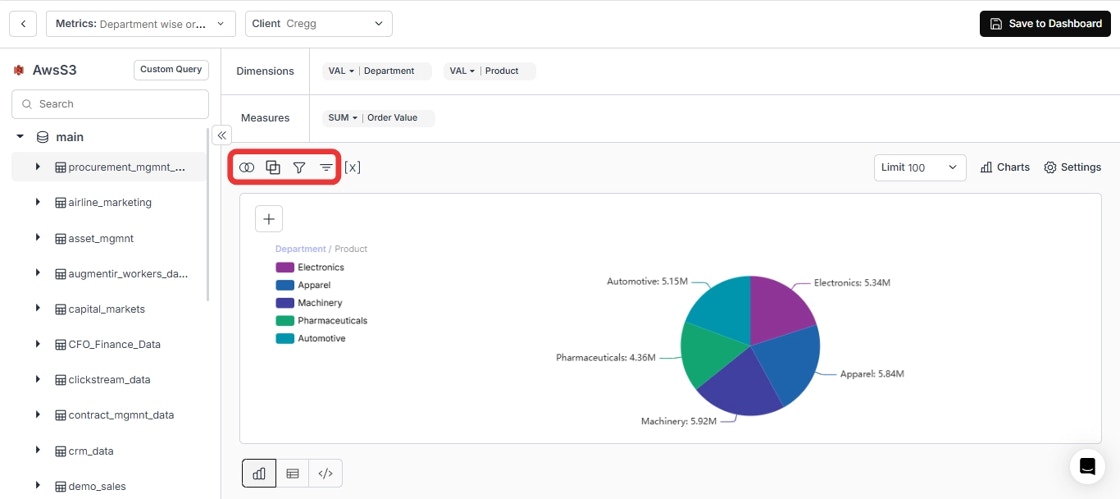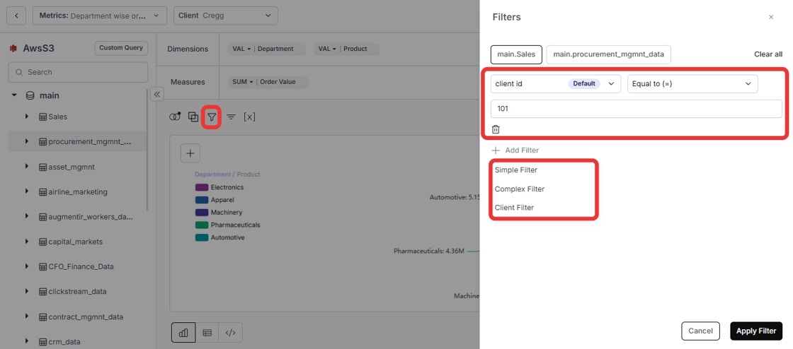 - Client Filter: Choose a column (usually client ID) matching your data warehouse tenancy, then click “Apply Filter”.