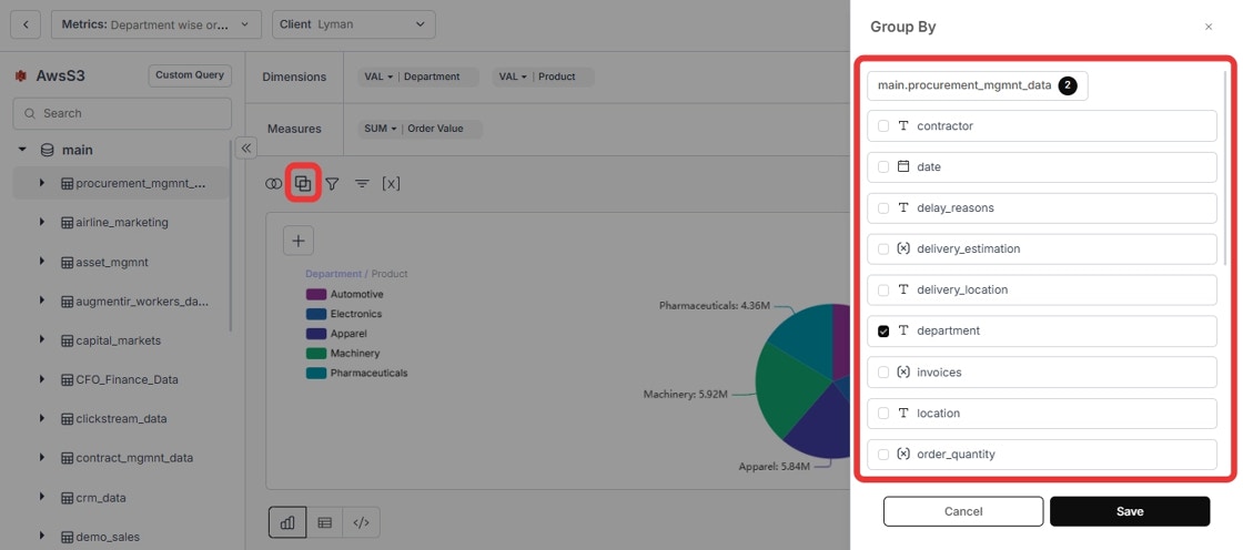 - Select Columns: Choose the columns you want to group by and click on “Save”.