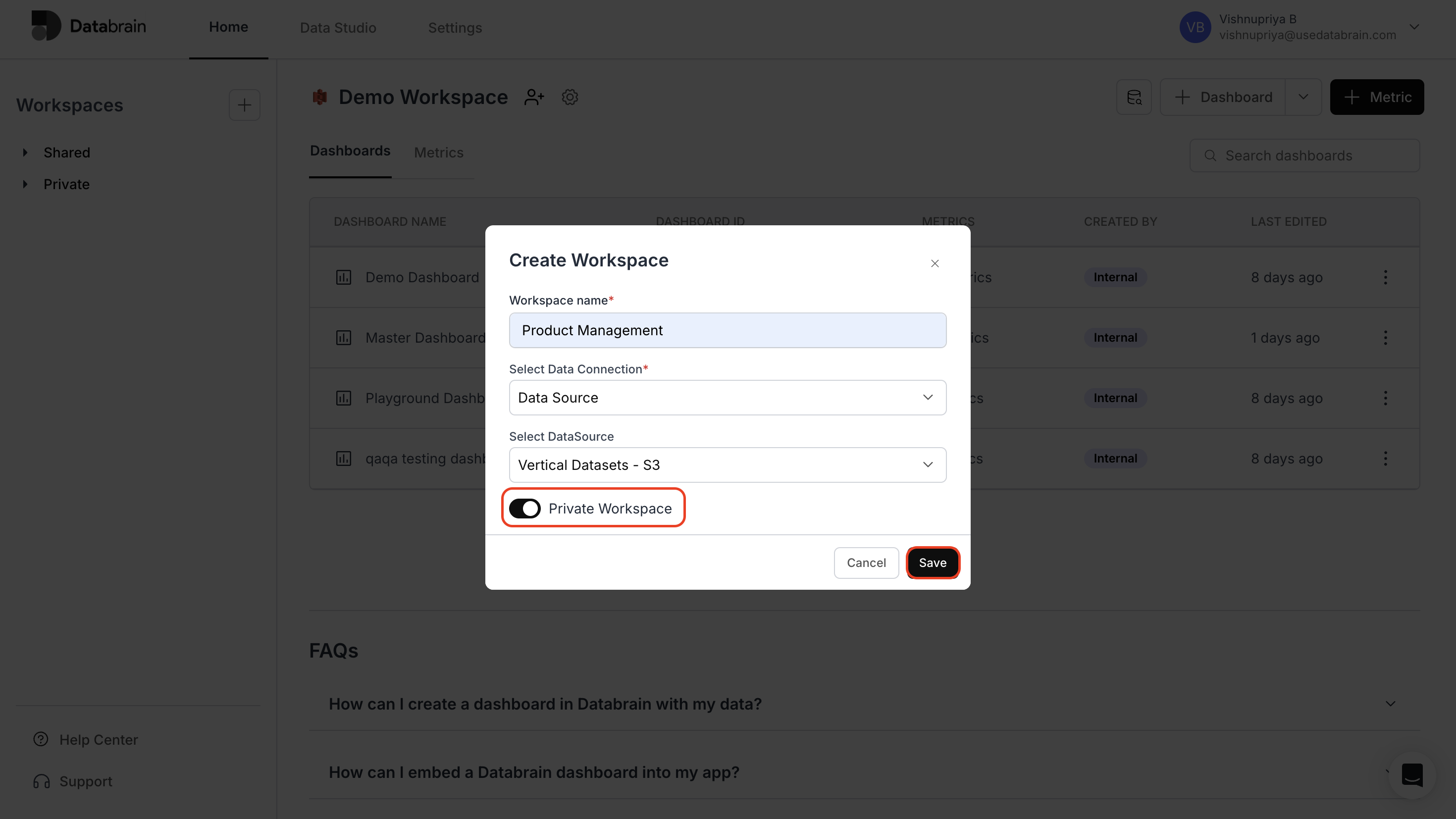 Your workspace is now secure and visible only to invited members, providing a safe environment to experiment, analyze, and collaborate on sensitive projects.