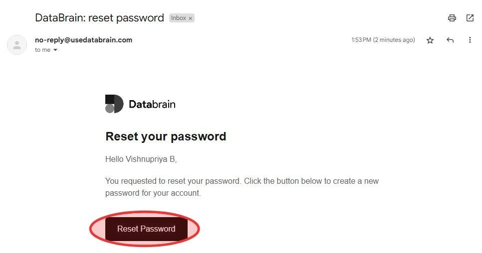 Navigate to the link shared to your registered mail ID by clicking on the “Reset Password” button.