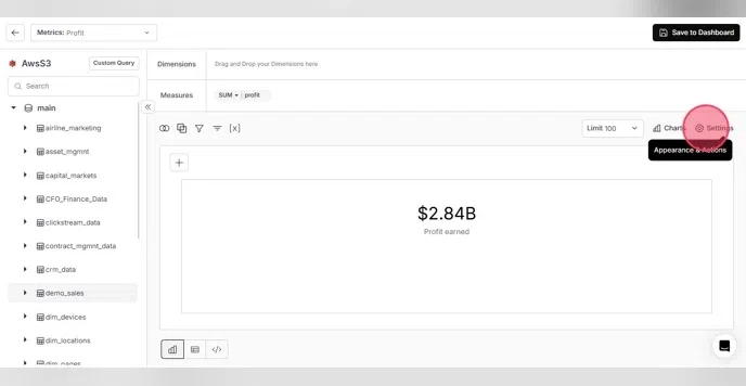 Select the metric you want to drill down into from the current metric and save the metric to your dashboard.