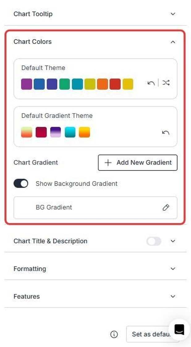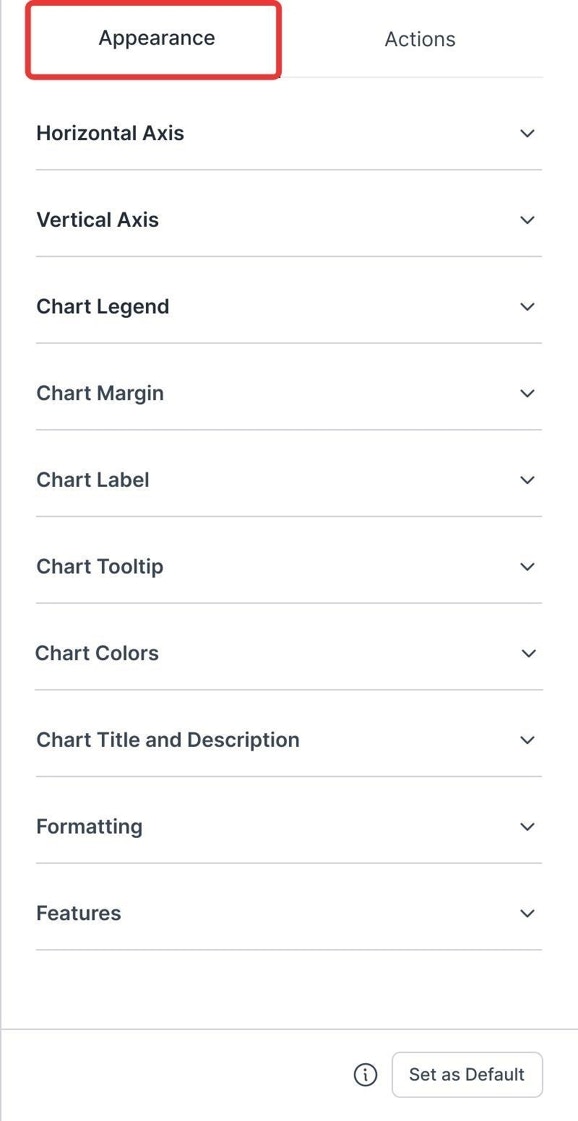 Note: Options may vary based on the “Chart Type” chosen. The features listed above are commonly found across various chart types.For chart-specific appearance options, kindly refer to the link below: